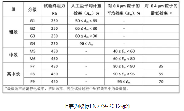 过滤器效率分级标准对比