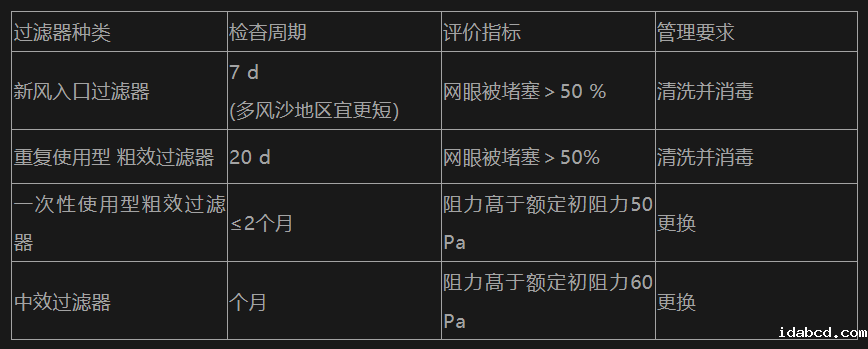 6 末端设备停用时间>3个月.应按照(GB 50365及生产厂家技术说明书的要求维修、保养,对末端 设备进行全面检查.依据检查结果进行清洗、消毒或更换.