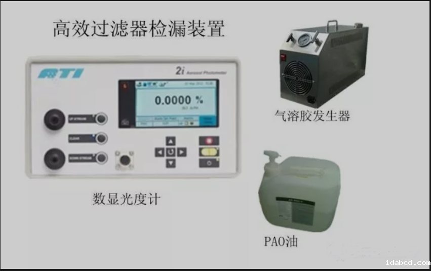 使用仪器为气胶光度计(Aerosol Photometer)与微粒产生器(Aerosol Generator)。气胶光度计的显示版有模拟与数字两种,每年必须校正一次。微粒产生器有两种,一种是普通的微粒产生器,只要求高压空气,另一种是加热型微粒产生器,要高压空气和电源,微粒产生器不需要校正。