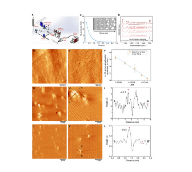 Agrawal 的研究小组通过刻蚀单层石墨烯,使其具有亚埃精度的高孔密度,而这正是实现类似尺寸气体分子(比如二氧化碳和氮气)高通量分离的关键所在。然而,想达到如此高的精度,这对刻蚀动力学也提出了更高的要求。